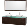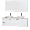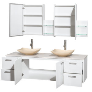 The Amare wall-mounted vanity family delivers beautiful glossy exteriors with modern brushed chrome door pulls. Each vanity provides a full complement of storage areas behind sturdy soft-close doors and drawers. This versatile vanity family is available with distinctive vessel sinks or sleek integrated counter and sinks to fulfill your design dreams. A wall-mounted vanity leaves space in your bathroom for you to relax. The simple clean lines of the Amare wall-mounted vanity family are no-fuss and all style.