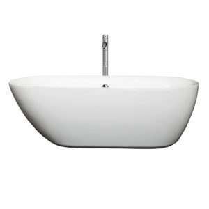 Rebecca 65 inch Freestanding Bathtub in White with Floor Mounted Faucet, Drain and Overflow Trim in Polished Chrome