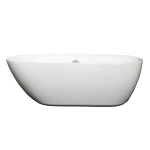 Rebecca 65 inch Freestanding Bathtub in White with Brushed Nickel Drain and Overflow Trim