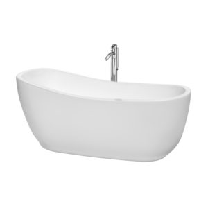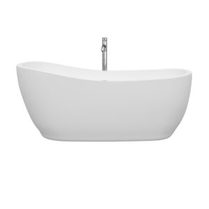 Margaret 66 inch Freestanding Bathtub in White with Floor Mounted Faucet, Drain and Overflow Trim in Polished Chrome