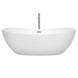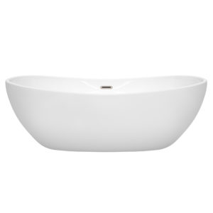 Rebecca 70 inch Freestanding Bathtub in White with Brushed Nickel Drain and Overflow Trim