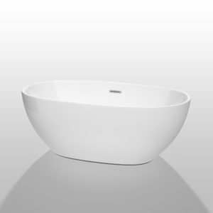 Juno 63 inch Freestanding Bathtub in White with Polished Chrome Drain and Overflow Trim