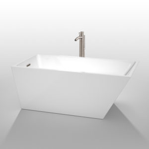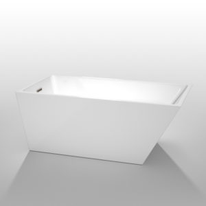 Tiffany 59 inch Freestanding Bathtub in White with Brushed Nickel Drain and Overflow Trim