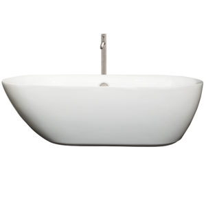 Melissa 65 inch Freestanding Bathtub in White with Brushed Nickel Drain and Overflow Trim