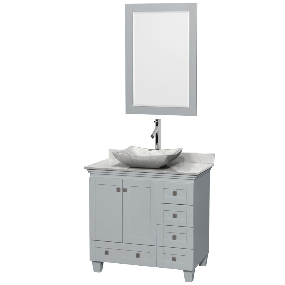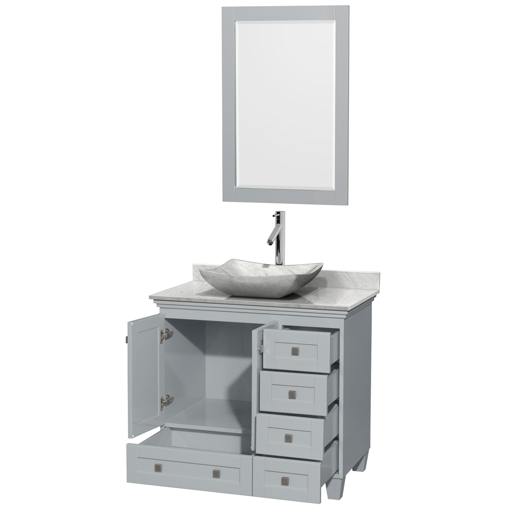 Sublimely linking traditional and modern design aesthetics, and part of the exclusive Wyndham Collection designer series by Christopher Grubb, the Acclaim vanity is at home in almost every bathroom decor. This solid oak vanity blends the simple lines of traditional design with modern elements like vessel sinks and brushed chrome hardware, resulting in a timeless piece of bathroom furniture. The Acclaim is available with a white Carrara or ivory marble counter, porcelain vessel sinks, and matching mirrors. Featuring soft-close door hinges and drawer glides, you’ll never hear a noisy door again. Meticulous attention to detail on this beautiful vanity is second to none and is sure to be envy of your friends and neighbors.