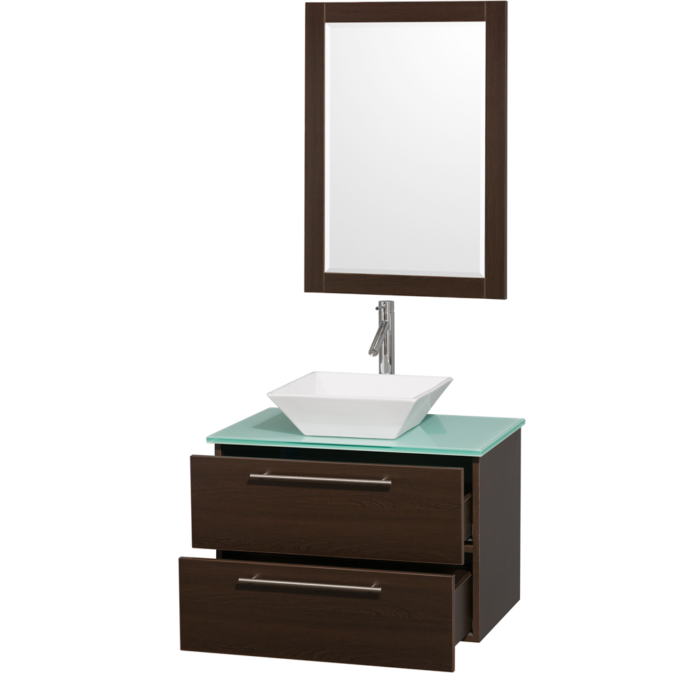 Modern clean lines and a truly elegant design aesthetic meet affordability in the Wyndham Collection Amare vanity. Available with green glass, acrylic resin or pure white man-made stone counters, and featuring soft-close door hinges and drawer glides, you’ll never hear a noisy door again. Meticulously finished with brushed chrome hardware, the attention to detail on this elegant contemporary vanity is unrivalled.