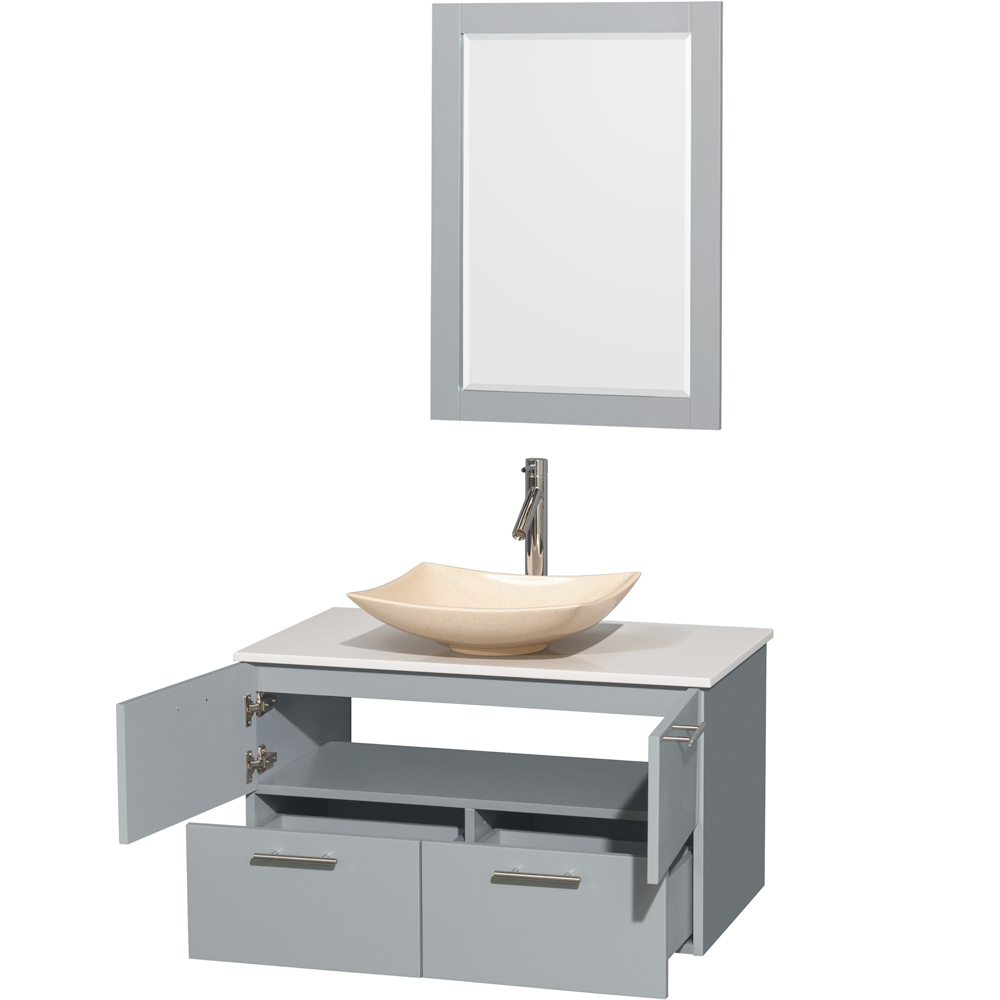 The Amare wall-mounted vanity family delivers beautiful glossy exteriors with modern brushed chrome door pulls. Each vanity provides a full complement of storage areas behind sturdy soft-close doors and drawers. This versatile vanity family is available with distinctive vessel sinks or sleek integrated counter and sinks to fulfill your design dreams. A wall-mounted vanity leaves space in your bathroom for you to relax. The simple clean lines of the Amare wall-mounted vanity family are no-fuss and all style.