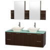 Amare 60 inch Double Bathroom Vanity in Glossy White, White Man-Made Stone Countertop, Altair Black Granite Sinks, and 58 inch Mirror
