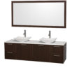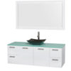 The Amare wall-mounted vanity family delivers beautiful glossy exteriors with modern brushed chrome door pulls. Each vanity provides a full complement of storage areas behind sturdy soft-close doors and drawers. This versatile vanity family is available with distinctive vessel sinks or sleek integrated counter and sinks to fulfill your design dreams. A wall-mounted vanity leaves space in your bathroom for you to relax. The simple clean lines of the Amare wall-mounted vanity family are no-fuss and all style.