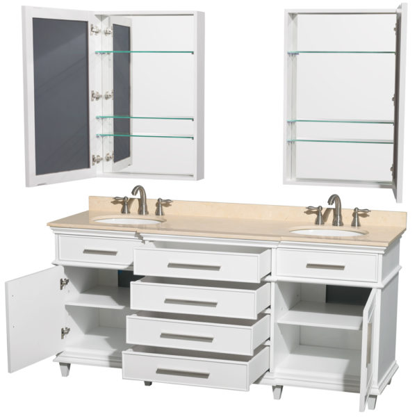 - Deep Doweled Drawers. Fully-extending under-mount soft-close drawer slides. Concealed soft-close door hinges. Counter options include Ivory Marble, and White Carrara Marble. Counter includes 3″ backsplash. Matching Medicine Cabinet(s) included.