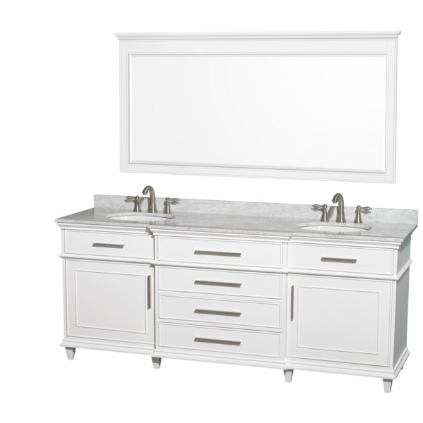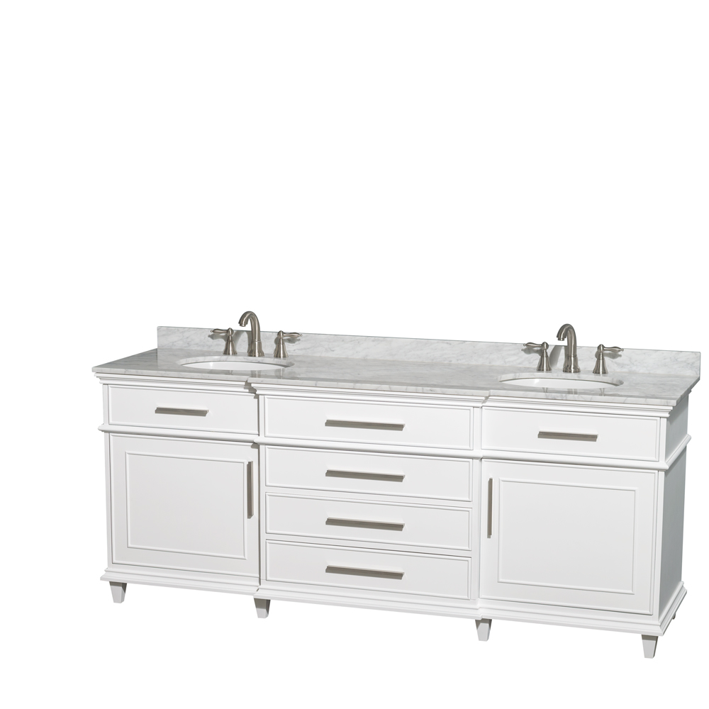Berkeley 80 inch Double Bathroom Vanity in White with White Carrara Marble Top with White Undermount Oval Sinks and No Mirror