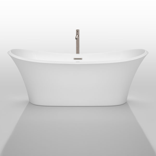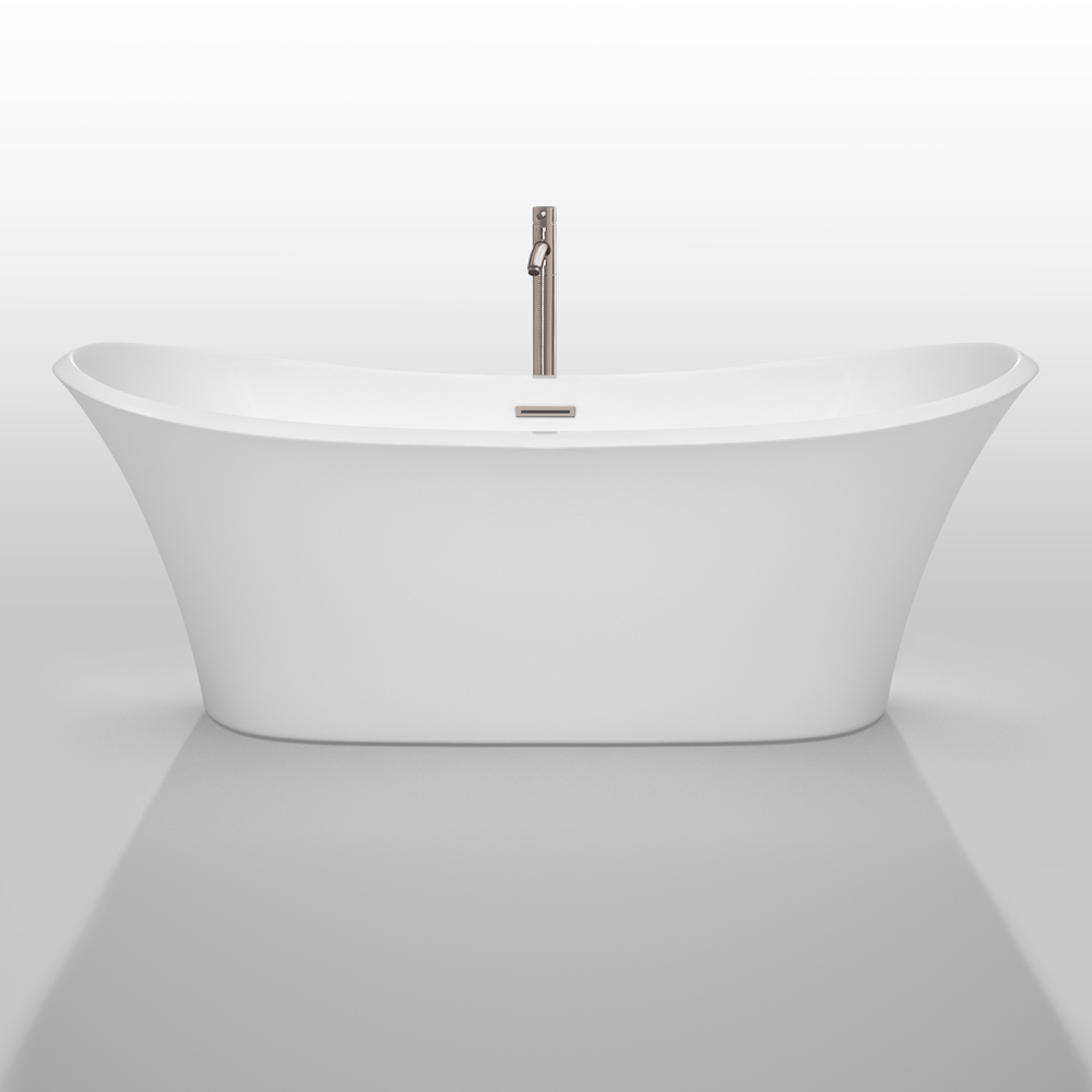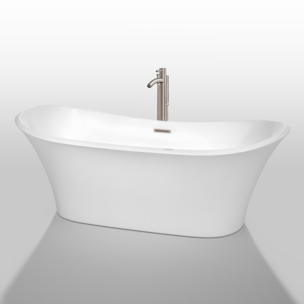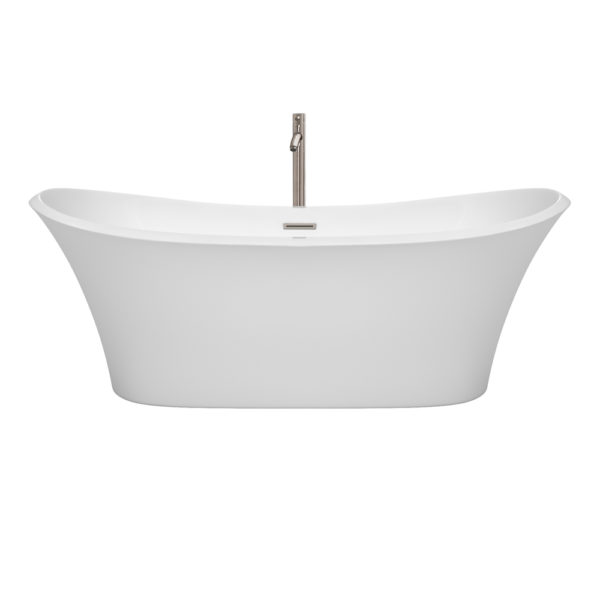 Bolera 71 inch Freestanding Bathtub in White with Floor Mounted Faucet, Drain and Overflow Trim in Brushed Nickel