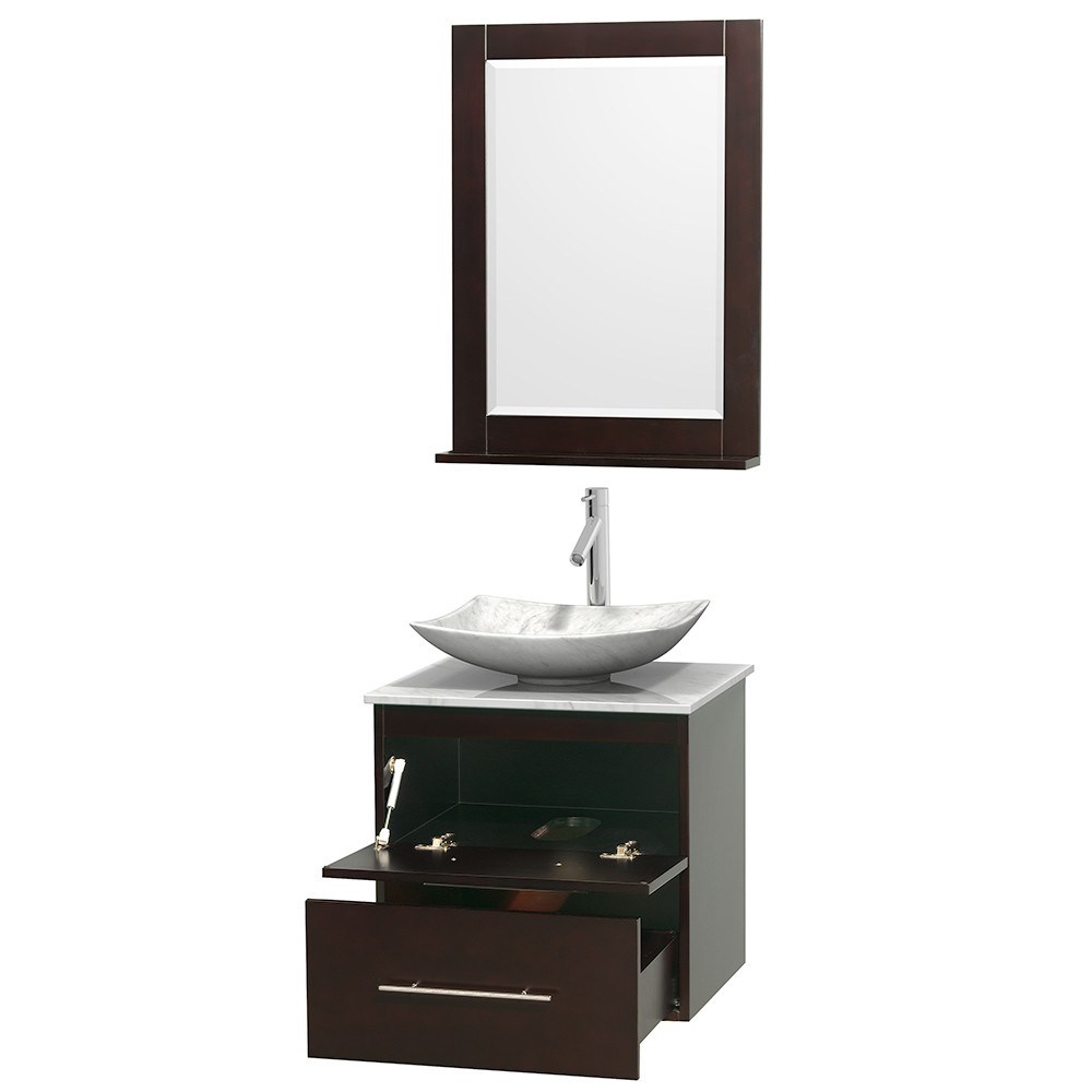 Centra 24 inch Single Bathroom Vanity in Espresso, White Carrara Marble Countertop, Arista White Carrara Marble Sink, and 24 inch Mirror