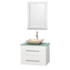 Simplicity and elegance combine in the perfect lines of the Centra vanity by the Wyndham Collection. If cutting-edge contemporary design is your style then the Centra vanity is for you – modern, chic and built to last a lifetime. Available with green glass, pure white man-made stone, ivory marble or white Carrara marble counters, with stunning vessel or undermount sink(s) and matching mirror(s). Featuring soft-close door hinges, drawer glides, and meticulously finished with brushed chrome hardware. The attention to detail on this beautiful vanity is second to none.