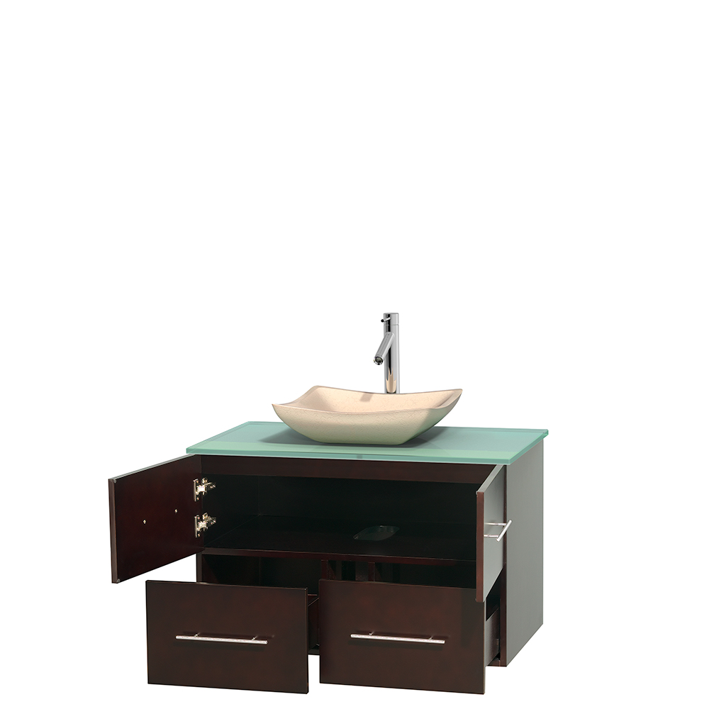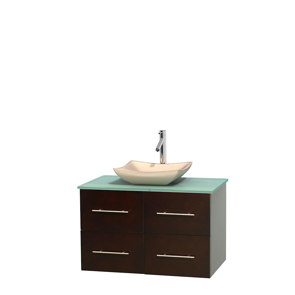 Simplicity and elegance combine in the perfect lines of the Centra vanity by the Wyndham Collection. If cutting-edge contemporary design is your style then the Centra vanity is for you – modern, chic and built to last a lifetime. Available with green glass, pure white man-made stone, ivory marble or white Carrara marble counters, with stunning vessel or undermount sink(s) and matching mirror(s). Featuring soft-close door hinges, drawer glides, and meticulously finished with brushed chrome hardware. The attention to detail on this beautiful vanity is second to none.