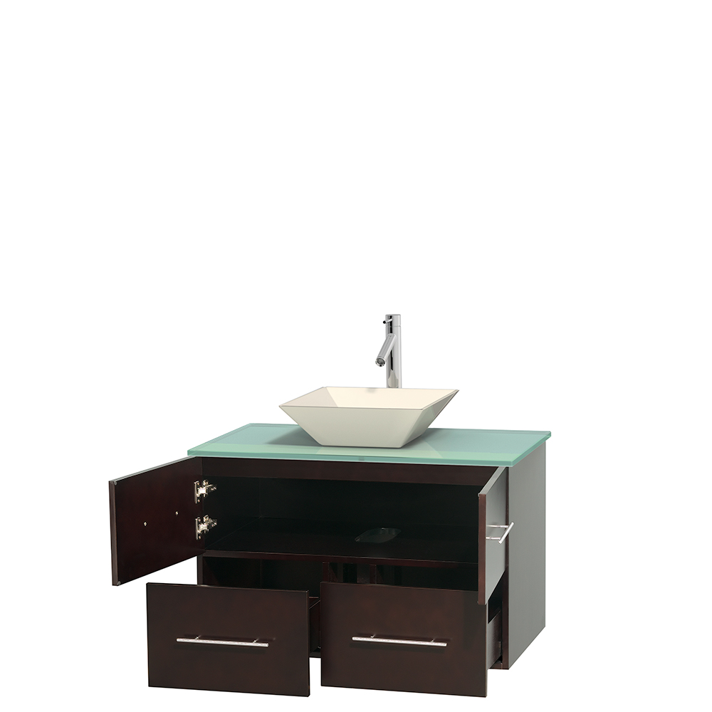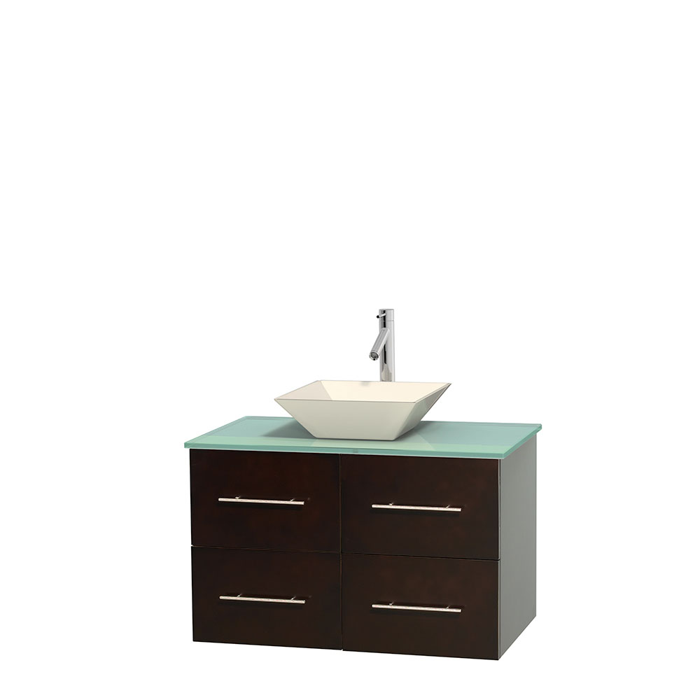 Simplicity and elegance combine in the perfect lines of the Centra vanity by the Wyndham Collection. If cutting-edge contemporary design is your style then the Centra vanity is for you – modern, chic and built to last a lifetime. Available with green glass, pure white man-made stone, ivory marble or white Carrara marble counters, with stunning vessel or undermount sink(s) and matching mirror(s). Featuring soft-close door hinges, drawer glides, and meticulously finished with brushed chrome hardware. The attention to detail on this beautiful vanity is second to none.