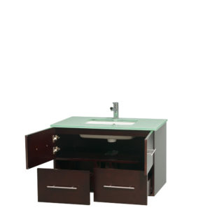 Simplicity and elegance combine in the perfect lines of the Centra vanity by the Wyndham Collection. If cutting-edge contemporary design is your style then the Centra vanity is for you – modern, chic and built to last a lifetime. Available with green glass, pure white man-made stone, ivory marble or white Carrara marble counters, with stunning vessel or undermount sink(s) and matching mirror(s). Featuring soft-close door hinges, drawer glides, and meticulously finished with brushed chrome hardware. The attention to detail on this beautiful vanity is second to none.