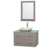 Centra 36 inch Single Bathroom Vanity in Gray Oak, Green Glass Countertop, Altair Black Granite Sink, and No Mirror