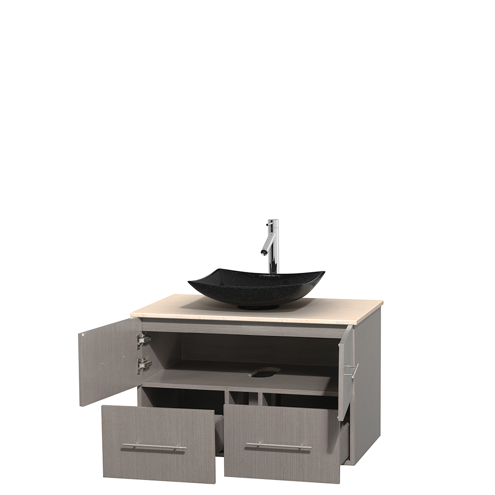 Simplicity and elegance combine in the perfect lines of the Centra vanity by the Wyndham Collection. If cutting-edge contemporary design is your style then the Centra vanity is for you – modern, chic and built to last a lifetime. Available with green glass, pure white man-made stone, ivory marble or white Carrara marble counters, with stunning vessel or undermount sink(s) and matching mirror(s). Featuring soft-close door hinges, drawer glides, and meticulously finished with brushed chrome hardware. The attention to detail on this beautiful vanity is second to none.