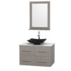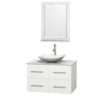 Centra 36 inch Single Bathroom Vanity in Matte White, White Carrara Marble Countertop, Arista Ivory Marble Sink, and 24 inch Mirror