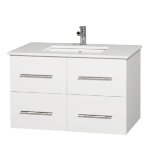 Simplicity and elegance combine in the perfect lines of the Centra vanity by the Wyndham Collection. If cutting-edge contemporary design is your style then the Centra vanity is for you – modern, chic and built to last a lifetime. Available with green glass, pure white man-made stone, ivory marble or white Carrara marble counters, and featuring soft-close door hinges and drawer glides, you’ll never hear a noisy door again. The Centra comes with porcelain sinks and matching mirrors. Meticulously finished with brushed chrome hardware, the attention to detail on this beautiful vanity is second to none.