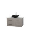 Centra 42 inch Single Bathroom Vanity in Gray Oak, Green Glass Countertop, Avalon White Carrara Marble Sink, and 36 inch Mirror