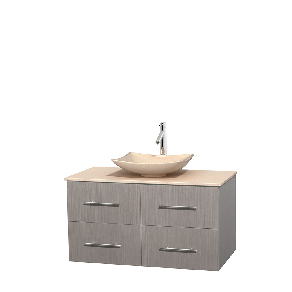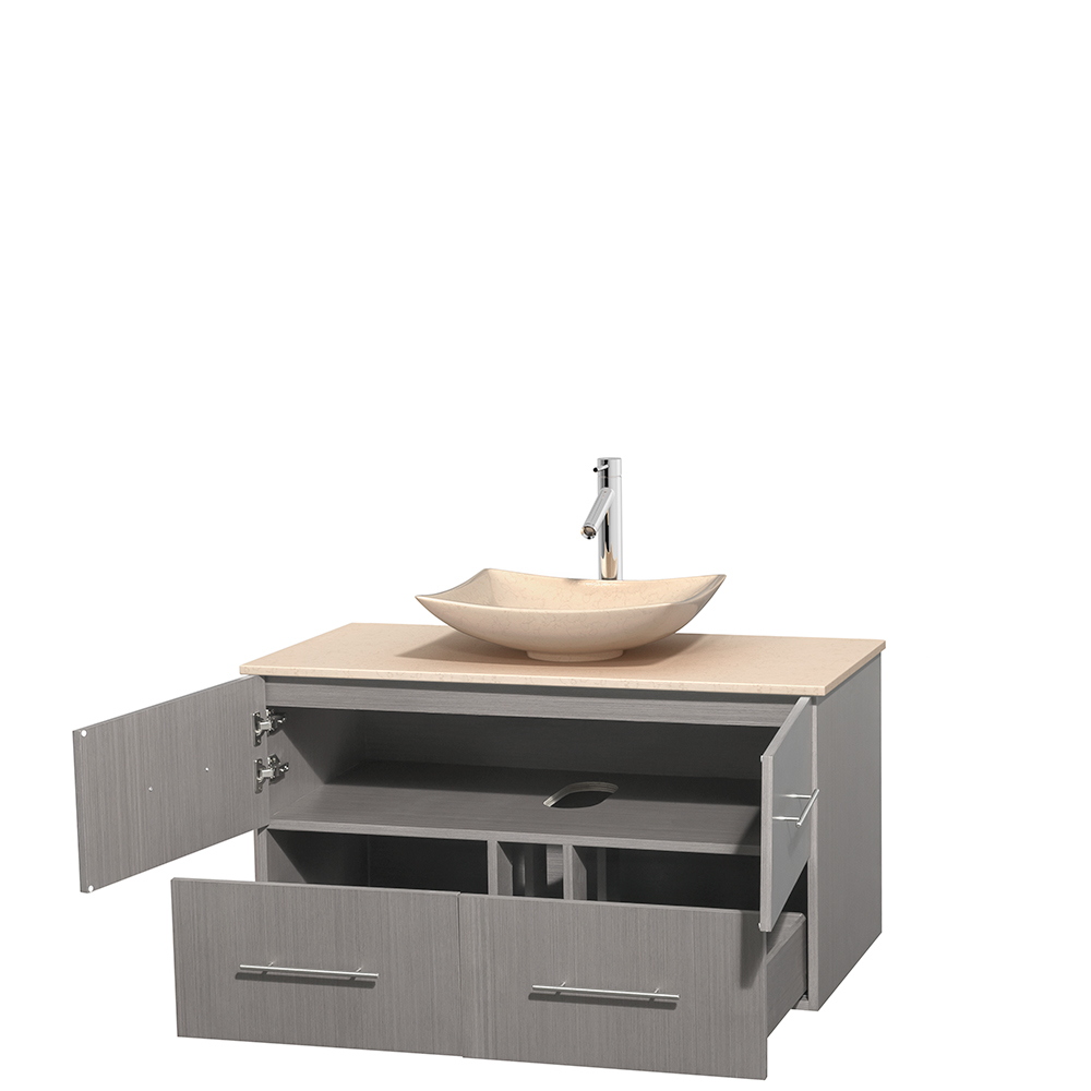 Centra 42 inch Single Bathroom Vanity in Gray Oak, Ivory Marble Countertop, Arista Ivory Marble Sink, and No Mirror