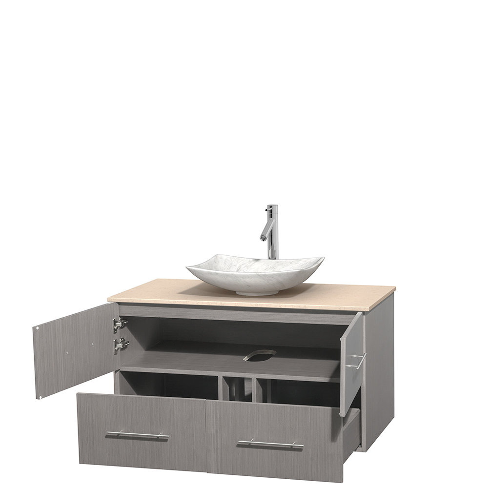 Centra 42 inch Single Bathroom Vanity in Gray Oak, Ivory Marble Countertop, Arista White Carrara Marble Sink, and No Mirror