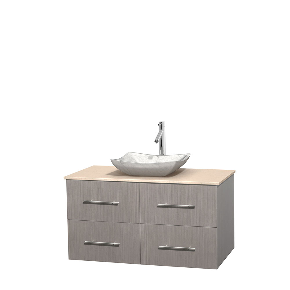 Centra 42 inch Single Bathroom Vanity in Gray Oak, Ivory Marble Countertop, Avalon White Carrara Marble Sink, and No Mirror