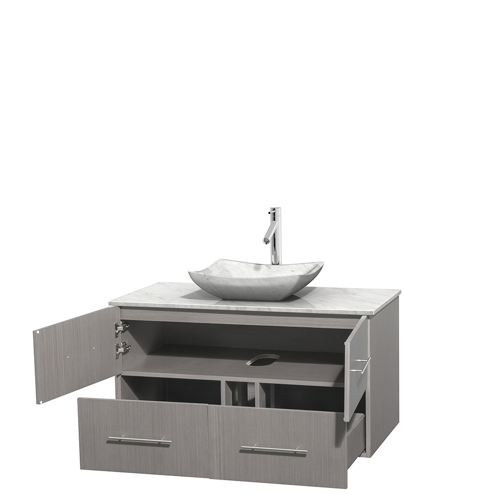 Simplicity and elegance combine in the perfect lines of the Centra vanity by the Wyndham Collection. If cutting-edge contemporary design is your style then the Centra vanity is for you – modern, chic and built to last a lifetime. Available with green glass, pure white man-made stone, ivory marble or white Carrara marble counters, with stunning vessel or undermount sink(s) and matching mirror(s). Featuring soft-close door hinges, drawer glides, and meticulously finished with brushed chrome hardware. The attention to detail on this beautiful vanity is second to none.