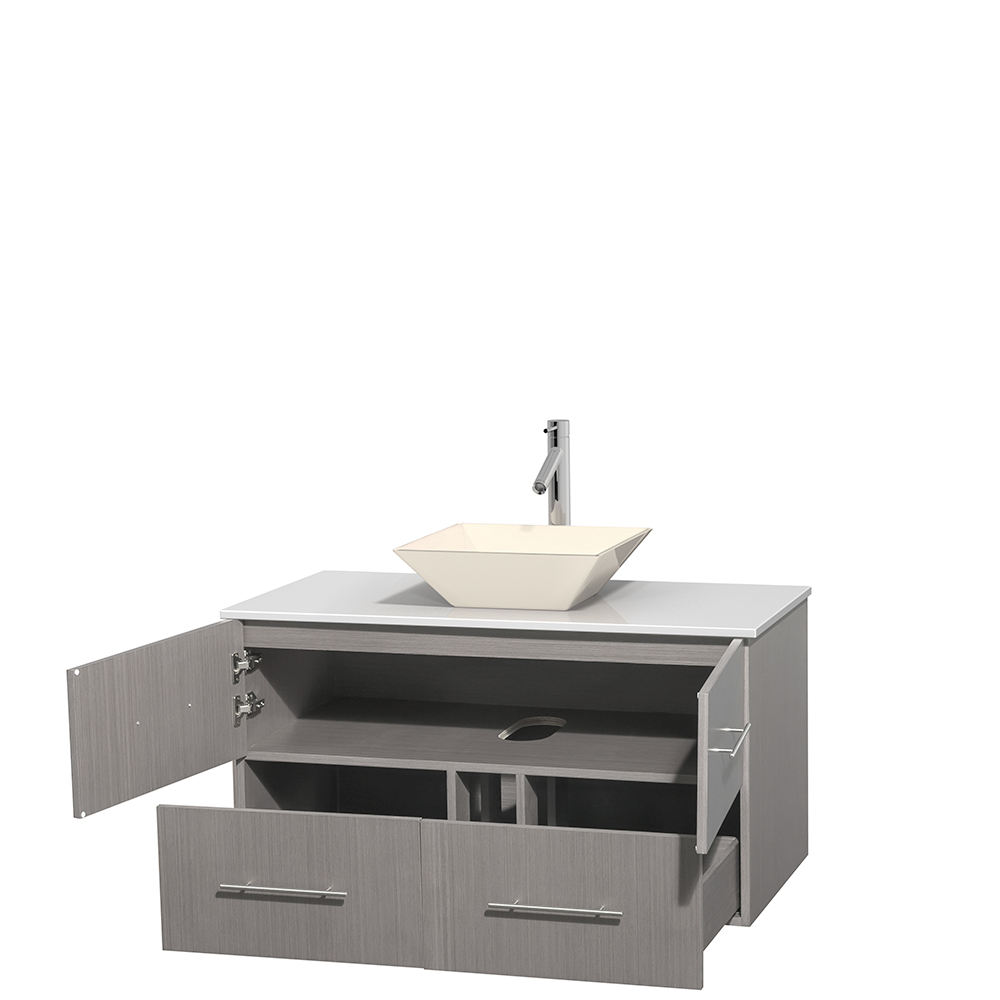 Simplicity and elegance combine in the perfect lines of the Centra vanity by the Wyndham Collection. If cutting-edge contemporary design is your style then the Centra vanity is for you – modern, chic and built to last a lifetime. Available with green glass, pure white man-made stone, ivory marble or white Carrara marble counters, with stunning vessel or undermount sink(s) and matching mirror(s). Featuring soft-close door hinges, drawer glides, and meticulously finished with brushed chrome hardware. The attention to detail on this beautiful vanity is second to none.