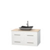Centra 42 inch Single Bathroom Vanity in Matte White, Ivory Marble Countertop, Pyra White Porcelain Sink, and No Mirror