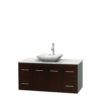 Simplicity and elegance combine in the perfect lines of the Centra vanity by the Wyndham Collection. If cutting-edge contemporary design is your style then the Centra vanity is for you – modern, chic and built to last a lifetime. Available with green glass, pure white man-made stone, ivory marble or white Carrara marble counters, with stunning vessel or undermount sink(s) and matching mirror(s). Featuring soft-close door hinges, drawer glides, and meticulously finished with brushed chrome hardware. The attention to detail on this beautiful vanity is second to none.