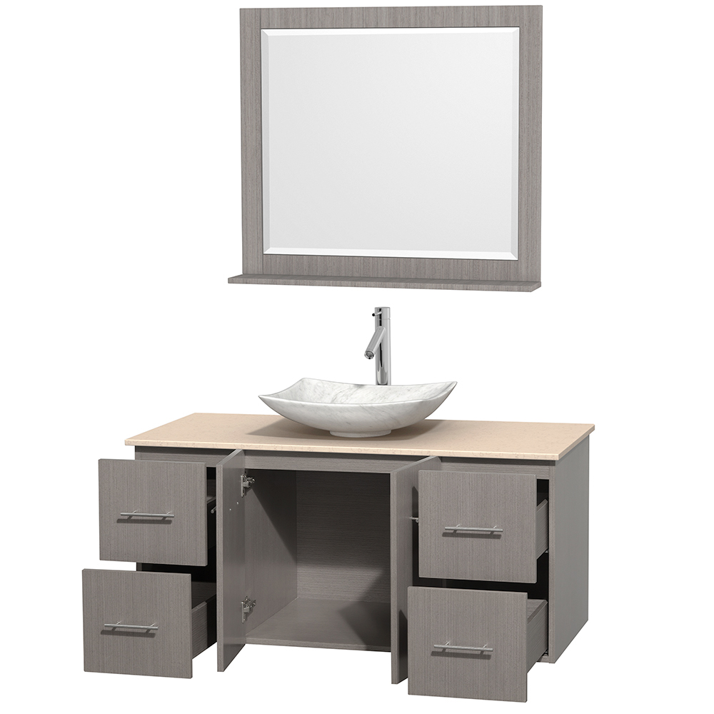 Simplicity and elegance combine in the perfect lines of the Centra vanity by the Wyndham Collection. If cutting-edge contemporary design is your style then the Centra vanity is for you – modern, chic and built to last a lifetime. Available with green glass, pure white man-made stone, ivory marble or white Carrara marble counters, with stunning vessel or undermount sink(s) and matching mirror(s). Featuring soft-close door hinges, drawer glides, and meticulously finished with brushed chrome hardware. The attention to detail on this beautiful vanity is second to none.
