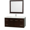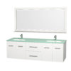 Centra 48 inch Single Bathroom Vanity in Matte White, Green Glass Countertop, Square Porcelain Undermount Sink, and 36 inch Mirror