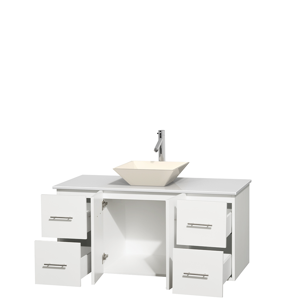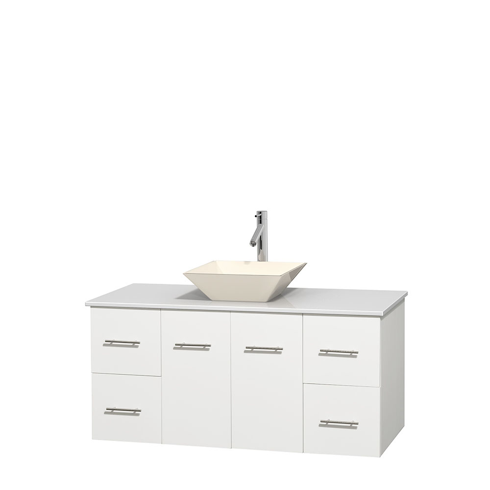 Simplicity and elegance combine in the perfect lines of the Centra vanity by the Wyndham Collection. If cutting-edge contemporary design is your style then the Centra vanity is for you – modern, chic and built to last a lifetime. Available with green glass, pure white man-made stone, ivory marble or white Carrara marble counters, with stunning vessel or undermount sink(s) and matching mirror(s). Featuring soft-close door hinges, drawer glides, and meticulously finished with brushed chrome hardware. The attention to detail on this beautiful vanity is second to none.