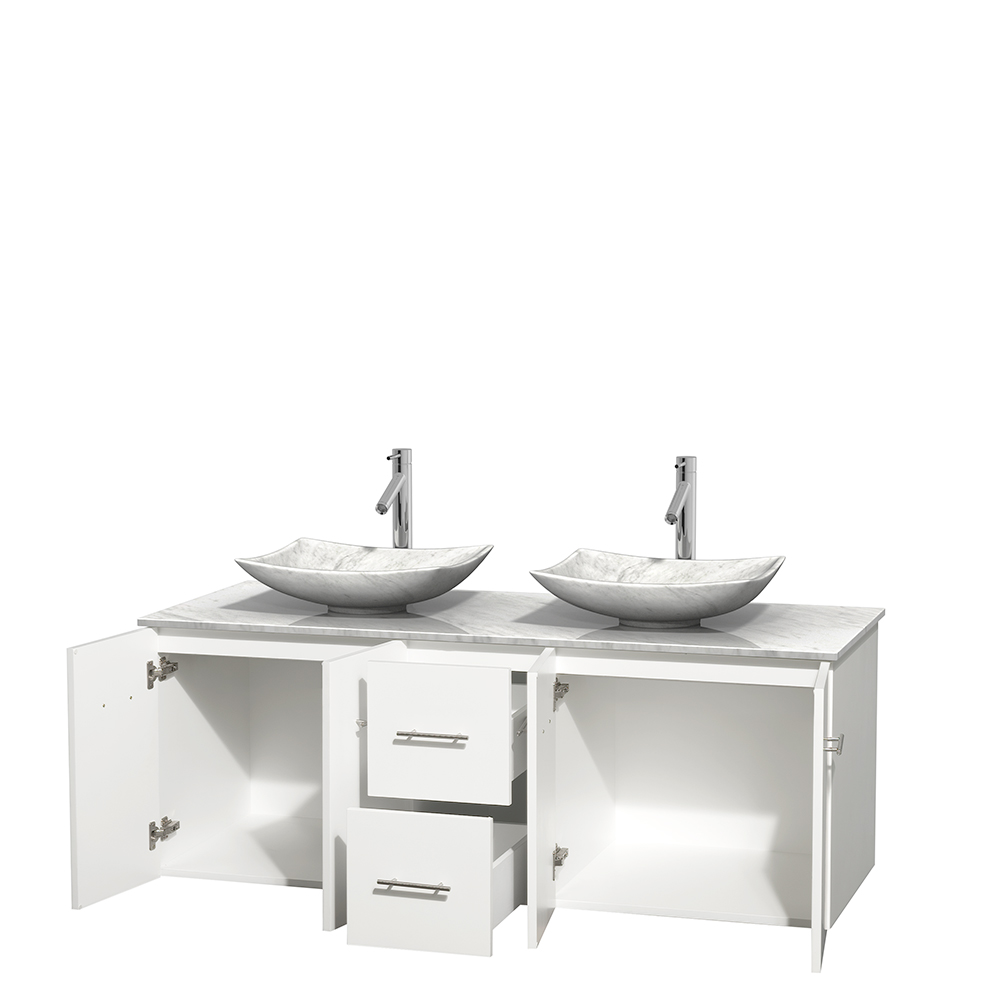 Simplicity and elegance combine in the perfect lines of the Centra vanity by the Wyndham Collection. If cutting-edge contemporary design is your style then the Centra vanity is for you – modern, chic and built to last a lifetime. Available with green glass, pure white man-made stone, ivory marble or white Carrara marble counters, with stunning vessel or undermount sink(s) and matching mirror(s). Featuring soft-close door hinges, drawer glides, and meticulously finished with brushed chrome hardware. The attention to detail on this beautiful vanity is second to none.