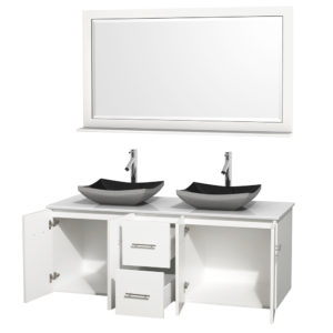 Simplicity and elegance combine in the perfect lines of the Centra vanity by the Wyndham Collection. If cutting-edge contemporary design is your style then the Centra vanity is for you – modern, chic and built to last a lifetime. Available with green glass, pure white man-made stone, ivory marble or white Carrara marble counters, with stunning vessel or undermount sink(s) and matching mirror(s). Featuring soft-close door hinges, drawer glides, and meticulously finished with brushed chrome hardware. The attention to detail on this beautiful vanity is second to none.