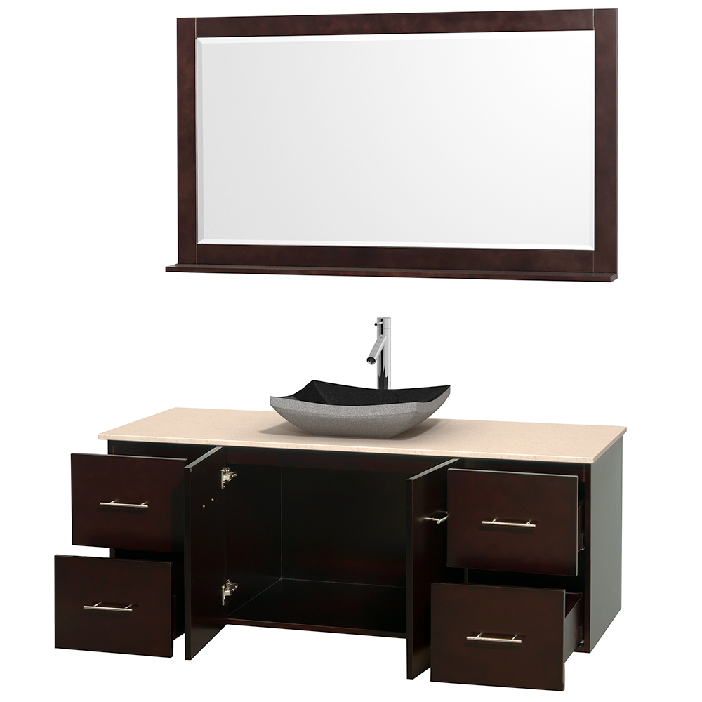 Simplicity and elegance combine in the perfect lines of the Centra vanity by the Wyndham Collection. If cutting-edge contemporary design is your style then the Centra vanity is for you – modern, chic and built to last a lifetime. Available with green glass, pure white man-made stone, ivory marble or white Carrara marble counters, with stunning vessel or undermount sink(s) and matching mirror(s). Featuring soft-close door hinges, drawer glides, and meticulously finished with brushed chrome hardware. The attention to detail on this beautiful vanity is second to none.