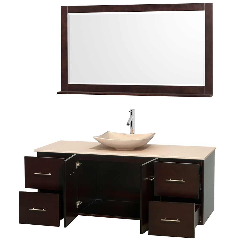 Simplicity and elegance combine in the perfect lines of the Centra vanity by the Wyndham Collection. If cutting-edge contemporary design is your style then the Centra vanity is for you – modern, chic and built to last a lifetime. Available with green glass, pure white man-made stone, ivory marble or white Carrara marble counters, with stunning vessel or undermount sink(s) and matching mirror(s). Featuring soft-close door hinges, drawer glides, and meticulously finished with brushed chrome hardware. The attention to detail on this beautiful vanity is second to none.
