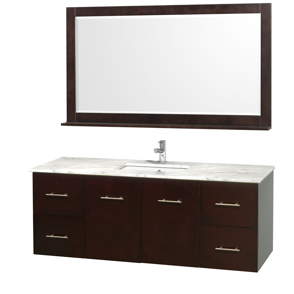 Simplicity and elegance combine in the perfect lines of the Centra vanity by the Wyndham Collection. If cutting-edge contemporary design is your style then the Centra vanity is for you – modern, chic and built to last a lifetime. Available with green glass, pure white man-made stone, ivory marble or white Carrara marble counters, and featuring soft-close door hinges and drawer glides, you’ll never hear a noisy door again. The Centra comes with porcelain sinks and matching mirrors. Meticulously finished with brushed chrome hardware, the attention to detail on this beautiful vanity is second to none.