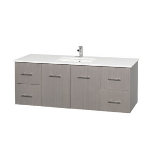 Centra 60 inch Single Bathroom Vanity in Gray Oak, White Man-Made Stone Countertop, Square Porcelain Undermount Sink, and 58 inch Mirror