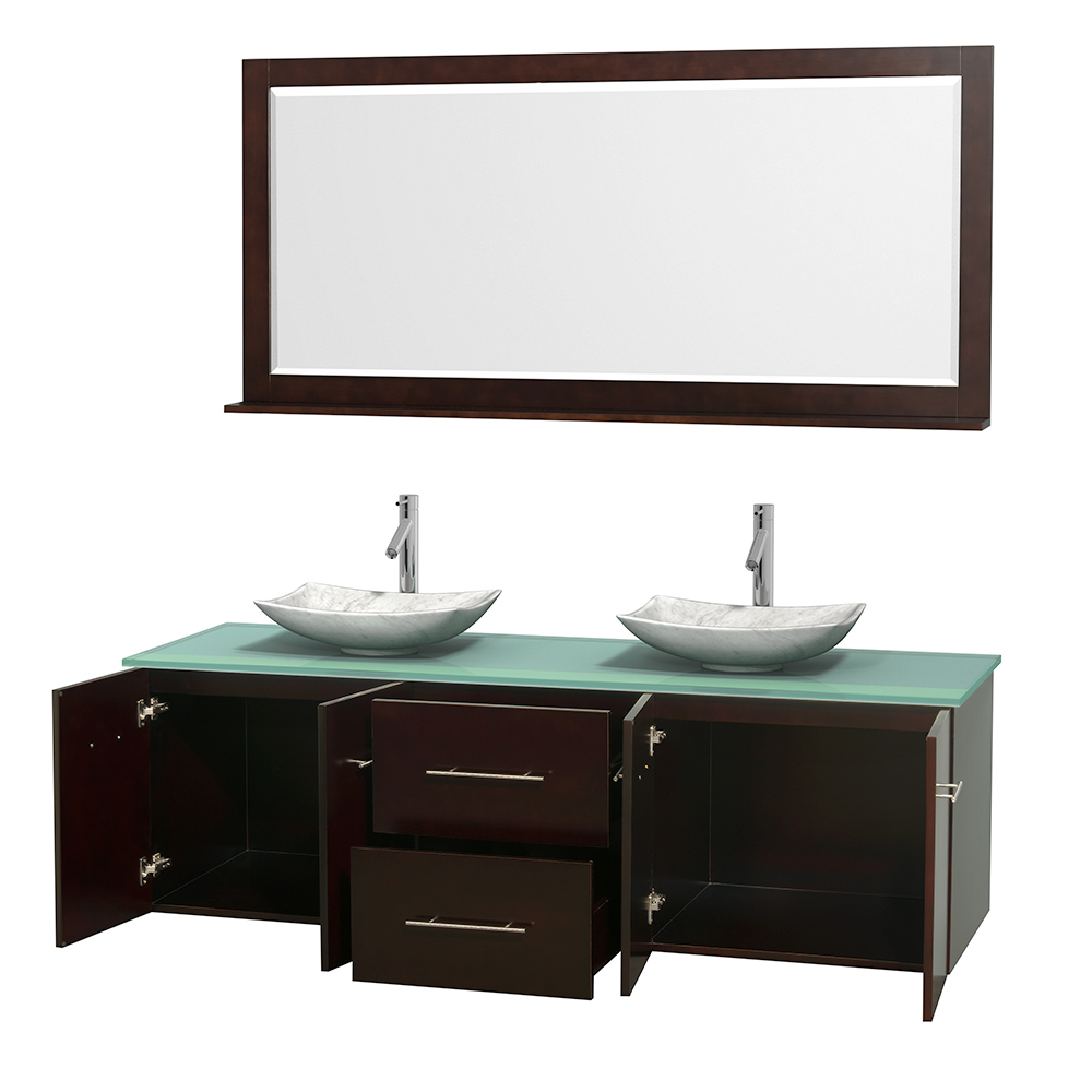 Simplicity and elegance combine in the perfect lines of the Centra vanity by the Wyndham Collection. If cutting-edge contemporary design is your style then the Centra vanity is for you – modern, chic and built to last a lifetime. Available with green glass, pure white man-made stone, ivory marble or white Carrara marble counters, with stunning vessel or undermount sink(s) and matching mirror(s). Featuring soft-close door hinges, drawer glides, and meticulously finished with brushed chrome hardware. The attention to detail on this beautiful vanity is second to none.