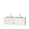 Simplicity and elegance combine in the perfect lines of the Centra vanity by the Wyndham Collection. If cutting-edge contemporary design is your style then the Centra vanity is for you – modern, chic and built to last a lifetime. Available with green glass, pure white man-made stone, ivory marble or white Carrara marble counters, with stunning vessel or undermount sink(s) and matching mirror(s). Featuring soft-close door hinges, drawer glides, and meticulously finished with brushed chrome hardware. The attention to detail on this beautiful vanity is second to none.