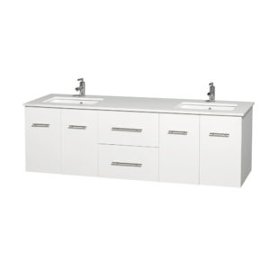 Simplicity and elegance combine in the perfect lines of the Centra vanity by the Wyndham Collection. If cutting-edge contemporary design is your style then the Centra vanity is for you – modern, chic and built to last a lifetime. Available with green glass, pure white man-made stone, ivory marble or white Carrara marble counters, and featuring soft-close door hinges and drawer glides, you’ll never hear a noisy door again. The Centra comes with porcelain sinks and matching mirrors. Meticulously finished with brushed chrome hardware, the attention to detail on this beautiful vanity is second to none.