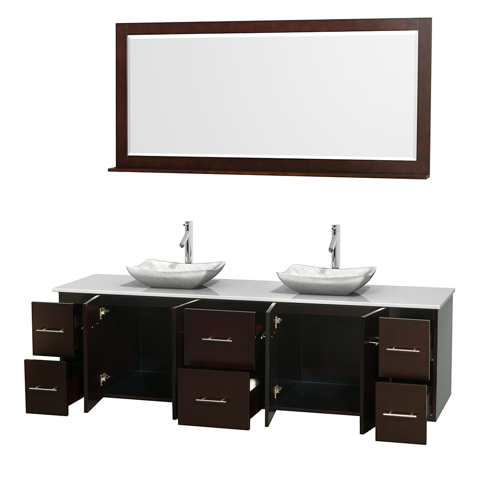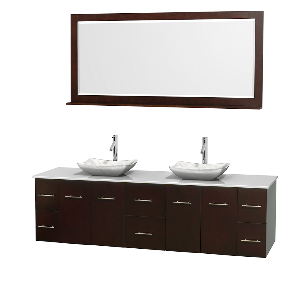 Simplicity and elegance combine in the perfect lines of the Centra vanity by the Wyndham Collection. If cutting-edge contemporary design is your style then the Centra vanity is for you – modern, chic and built to last a lifetime. Available with green glass, pure white man-made stone, ivory marble or white Carrara marble counters, with stunning vessel or undermount sink(s) and matching mirror(s). Featuring soft-close door hinges, drawer glides, and meticulously finished with brushed chrome hardware. The attention to detail on this beautiful vanity is second to none.