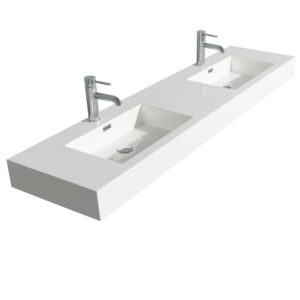 - One-piece acrylic-resin countertop with integrated sink(s) included