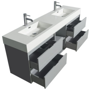 Sometimes simple is better, and this is one of those times. Modern, striking and refined, the Daniella bathroom vanity is an elegant way to modernize in one quick step. Daniella is designed for practicality and endurance, and is offered with a mirror and a beautiful white acrylic integrated sink that simply look great. Daniella bathroom vanities are available in multiple sizes and colors.
