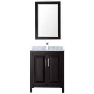 The beautiful Daria collection vanities stand out in any bathroom with strong, clean lines, raised panels and elegant counters with square sinks. There’s plenty of cabinet space, the doors are soft-close construction, and chrome detailing completes the look. Daria vanities deftly combine the function of today with a nod to the elegance of the past. It’s the new modern – classic styling with a contemporary twist.