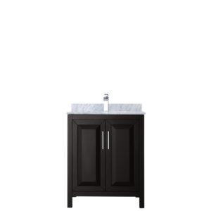 The beautiful Daria collection vanities stand out in any bathroom with strong, clean lines, raised panels and elegant counters with square sinks. There’s plenty of cabinet space, the doors are soft-close construction, and chrome detailing completes the look. Daria vanities deftly combine the function of today with a nod to the elegance of the past. It’s the new modern – classic styling with a contemporary twist.